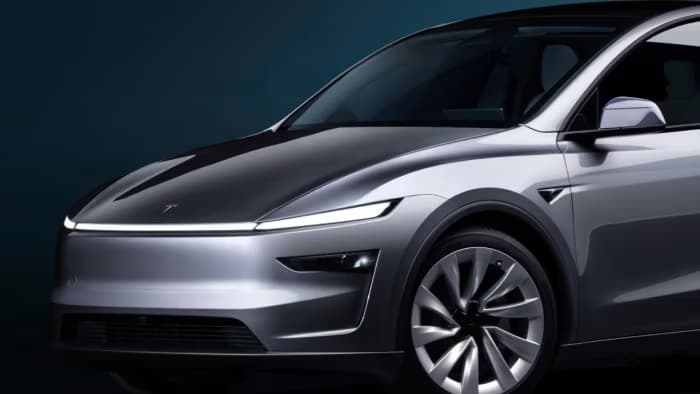 The 2025 facelift (Juniper) gives the Model Y a sleek and aerodynamic look with updated styling elements.