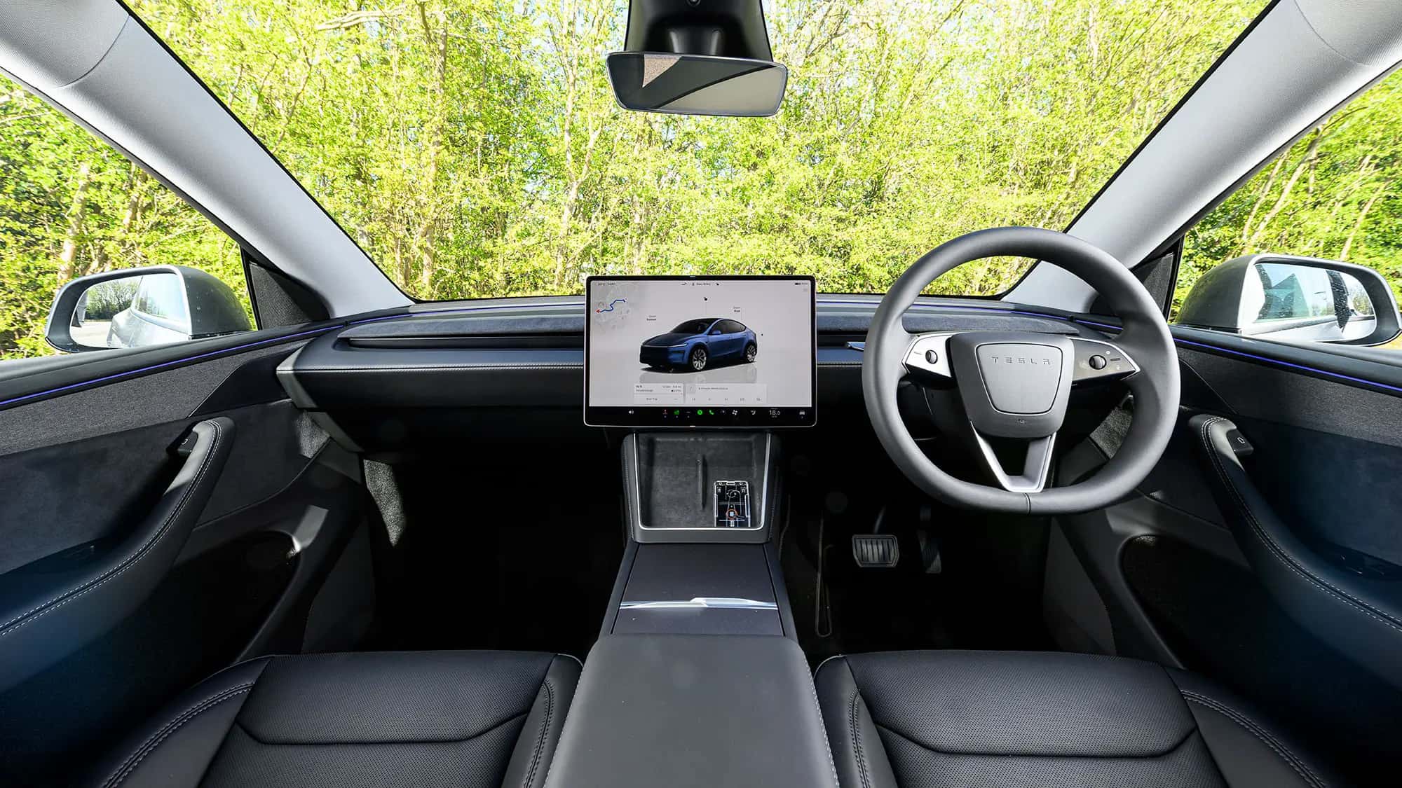 Inside the Model Y, Tesla’s signature minimalist design shines through. The 15.4-inch touchscreen replaces traditional buttons, managing everything from driving modes to media playback.